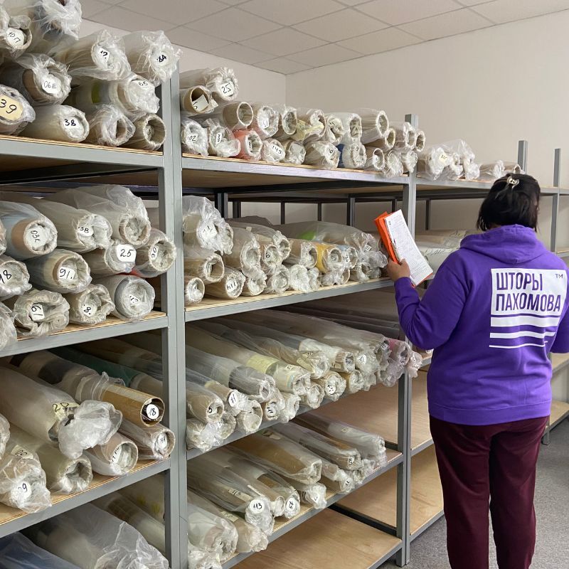 Склад хранения готовой продукции. Здесь готовые шторы ожидают доставки. И если у вас сейчас ремонт, мы бережно сохраним ваши шторы до его окончания.