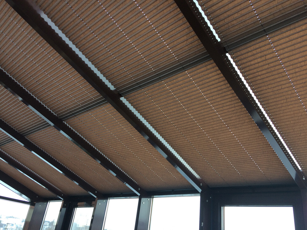 Кассетные шторы день-ночь установлены в комнате отдыха. Днем они защищают от солнца не перекрывая обзор, а ночью надежно скрывают от посторонних взглядов.