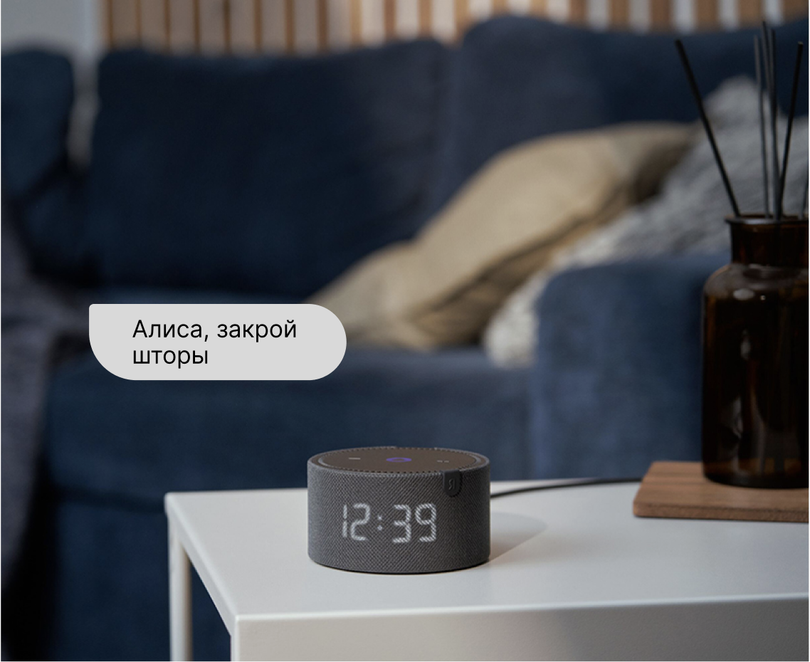 При заказе штор на электроприводе дарим вам колонку Алиса, через которую вы сможете управлять шторами голосом!