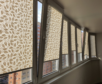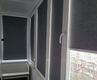 Кассетные шторы из плотной ткани полностью закрывают от света луны, фонарей и солнца. Удобны, когда на балконе рабочая зона или кабинет.
